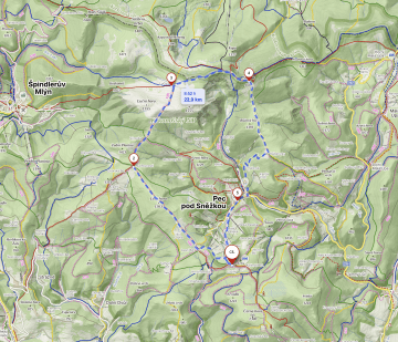 Okruhový výlet přes Liščí horu na Sněžku, a přes Pec zpět